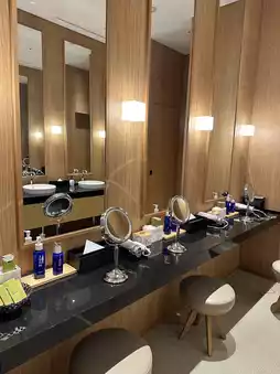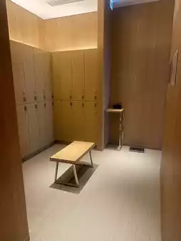 There are plenty of sinks and lockers. There is a water server and towels, so you can enter empty-handed.
