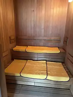 The bath itself is very compact. There is a bathtub about 6 x 1.5 meters, a cold bath, and a sauna!