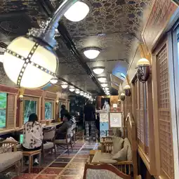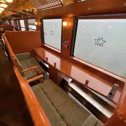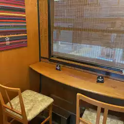 Let's take a look inside the train. It is beautifully decorated, especially the car with a counter selling goods and food, comfortable sofa seats, and counter seats facing the window for us to enjoy the view along the way. I have to say that we sat here for a long time, lol.