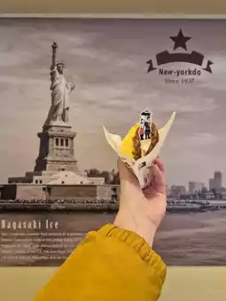 Nagasaki Japan has got many specialties but one of them is the famous castella cake, a type of butter sponge cake that is sweet, has a more eggy taste and a more fluffy texture. Castella cake taste even better with ice cream and one shop has done this dessert/snack well, and it is none other than New York Do. New York do sells castella ice cream cake with flavours like chocolate, strawberry, coffee, green tea etc. The castella cake is like a sandwich and the ice cream is stuffed in the middle - the combination of both is perfect, sweet and creamy with the ice cream slightly melting in the middle. Outside the shop, you can even find a vending machine selling this castella cake ice cream sandwich. How cool!