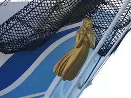 The figurehead is attached to the ship, depicting a goddess named "Konjo" playing a flute.