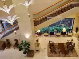 The front desk is not luxurious, but the calm atmosphere and open-ceiling structure are nice😊