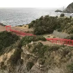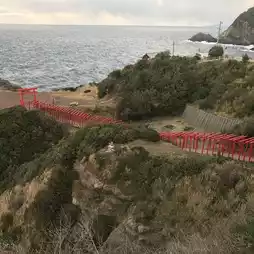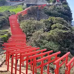 The contrast between the blue of the sea and the sky and the vermilion torii gate is amazing🌟The road is narrow and curved on the way, so you have to be careful💦There are few parking lots. There are often tourist buses.