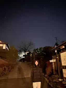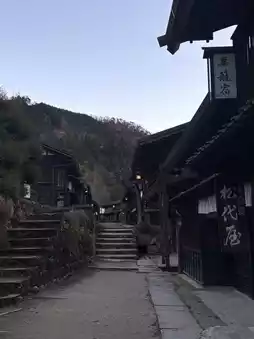 If you're taking the bus from Magome-juku, remember to check the bus schedule. There's only one bus every two hours or so, and it stops running early. Basically, there's no one around, and even the shops are closed. However, the night view is beautiful with lots of stars and hardly any lights. You can take a stroll outside. The place to stay is a guesthouse where you sleep on tatami mats, and both dinner and breakfast are included. It's nice but a bit pricey. The next morning, you can walk to the bus area below to catch the bus back to the station. Remember to bring enough cash as everything is cash-only, including the bus.