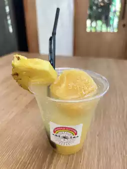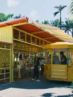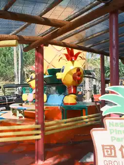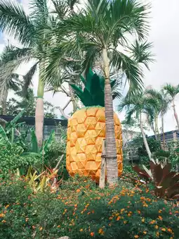 You can take a ride on a cute self-driving pineapple car when you enter the park