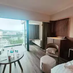 The room was automatically upgraded by the hotel this time, and the space is very ample. The sofa is placed next to the balcony, allowing you to enjoy the air conditioning and the view at the same time. In terms of the view, one side is the mountain and the other is the sea, which is endlessly fascinating!