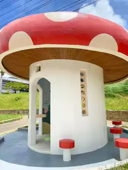 Discover something new on your trip to Okinawa. Enjoy a cute and fun time at the mushroom-shaped bus stop! (🍄•᎑•🍄)