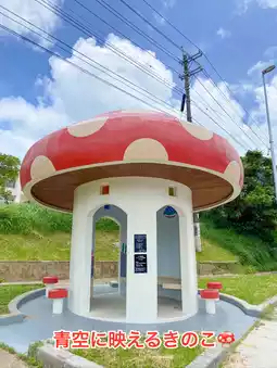 It was installed based on a design drawn by students at Haneji Junior High School and continues to be loved by locals😊The mushroom shape against the blue sky is very cute, and it is also a popular photo spot❣️