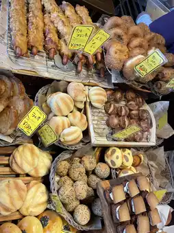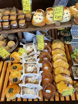 and there are many breads lined up from the time they open. From sweet breads to savory breads and cute character breads!