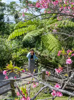 The winter cherry blossoms are in full bloom from late January to early February, making it a famous cherry blossom viewing spot in Okinawa Prefecture.