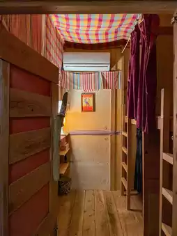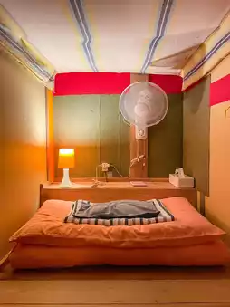 The simple private rooms are Japanese-style rooms with futon beds or bunk beds.
