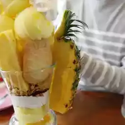 Take a pineapple-shaped car and tour the farm, then visit the cafe and eat a hearty pineapple parfait~