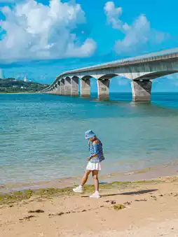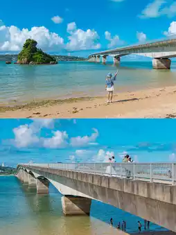 Kouri Beach boasts pristine white sand and crystal-clear waters, meeting Okinawa standards. It's a great location for taking photos.