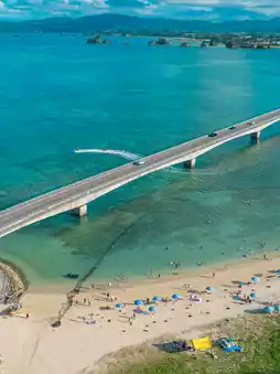 After crossing the bridge, if you'd like to touch the sea or even just take a stroll in the water, you can park your car next to Kouri Ohashi Bridge and head down to Kouri Beach.