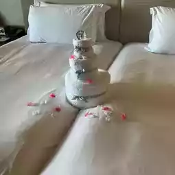 When I entered the room, I was happy to see a birthday 🎂 towel on the bed 😊 It was a shame to use it 💕