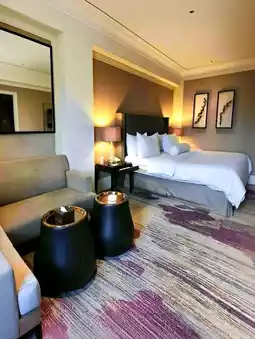 Our spacious and warmly furnished suite was clean and comfortable, featuring a cozy living area. It came with free Wi-Fi, flat-screen TVs, tea & coffee-making facilities, a minibar, and a safe. Room service was available 24/7, which made our stay even more pleasant.