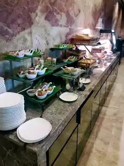 The complimentary breakfast buffet was delicious and offered a great variety. The hotel also has two restaurants, a coffee shop, and a bar, as well as excellent amenities including a gym, an outdoor pool, and free parking.