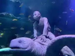 Aquarium with a unique and interesting world view that combines Lego blocks and sea creatures.