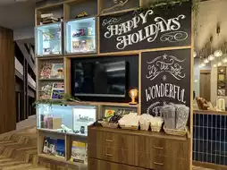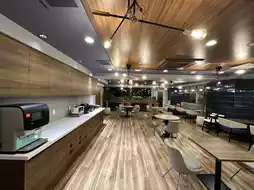 The shared space is equipped with a microwave and other things, and there were plenty of table seats!