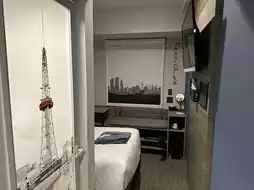 The rooms are equipped with beds, TVs, refrigerators, and sofas that you can put away.