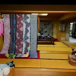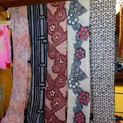 On a trip to Aichi, we stopped by "Arimatsu Shibori Hisada Main Store". The store was located at the end of a beautiful Japanese garden (down the stairs) after passing through a magnificent gate. It is in the style of an old Japanese kimono shop. There is a large Japanese-style room for fitting, a large mirror on the wall, and a tokonoma alcove where kimonos are displayed. As expected from a long-established Arimatsu shibori store. All the kimonos are wonderful and just looking at them makes me happy. They also do tailoring to suit individuals.