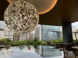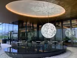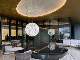 There is a huge spherical chandelier outside the lobby, which is also beautiful.