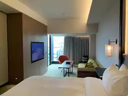 It's also nice that it has a balcony! The bed was king-size and the sofa was also tasteful.