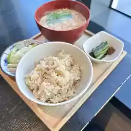 The lunch set comes with a set of rice cooked in a copper pot, miso soup, and pickles π₯’