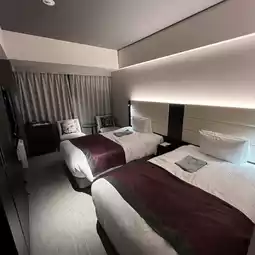 The hotel room is spacious enough for a single person to stay, and the night view of Nagoya from the window is beautiful✨