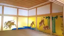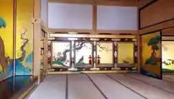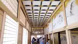 The Nakanoguchi section of the HonmaruGoten Palace is the current entrance, housing information desks, lockers, and shoe storage. While photography is generally permitted inside, flash photography is strictly prohibited. Once you enter the tour, follow the route through the hallway to the original entrance. The themes of the Honmaru Palace's screen paintings change from "animals" to "flowers and birds" to "people" to "landscapes," and from "bright colors" to "light colors" to "ink wash" to reflect the room's different styles.