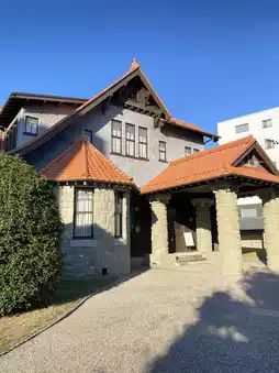 This is a restored mansion that was once the home of Japan's first actress, Sadayakko Kawakami, and electricity magnate, Momosuke Fukuzawa. Kimonos, suitcases, accessories, documents, and more are on display inside the building. The stained glass is beautiful, and the building itself is very cute, including the exterior. Highly recommended for sightseeing in Nagoya.
