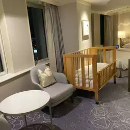 They provide a free baby bed, so you can stay here without worrying about bringing a baby 😄