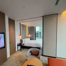 From the moment I stepped into the elegant lobby, I was struck by the hotel’s contemporary design, blending Japanese minimalism with bold modern accents. My room was a perfect reflection of this harmony, featuring clean lines, warm wooden tones, and floor-to-ceiling windows that flooded the space with natural light. The attention to detail was remarkable—plush bedding, a spacious work desk, and thoughtful touches like a curated selection of local teas and artisanal treats made the space feel both luxurious and inviting.