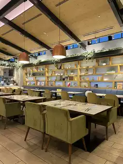 Atmosphere/Facilities: The space in front of the hotel lobby is equipped with books, furniture, and a café, creating a very relaxing atmosphere.