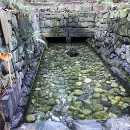 He enshrines the water deity "Miso-gomi." Legend has it that in the late Heian period, a Taira clan warrior washed his eyes with this water and recovered from an eye ailment! Simply pour a ladle over the central rock 🪨 three times and make a wish, and your wish will come true!