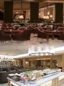 🏨 The hotel lobby is designed like a painting, with elegance and comfort in every corner. The magnificent chandeliers and the spacious front desk area make you feel warm and welcome as soon as you enter. Also, the hotel staff are very friendly and will be happy to help you with whatever you need.
