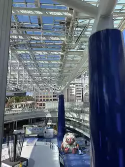 Get on the futuristic elevator and go up... Water flows on the glass roof, creating beautiful ripples.