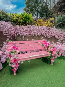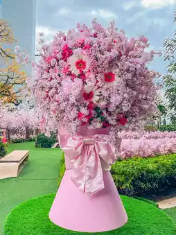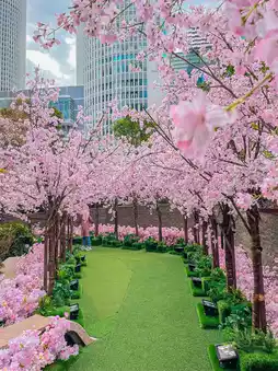 The Sky Garden on the 5th floor is decorated with pink cherry blossoms, and it's so spring-like that you won't believe you're inside a building.✨ There are lots of photo spots with huge cherry blossom bouquets and tree-lined streets, so no matter where you take a photo, it looks great.🥹