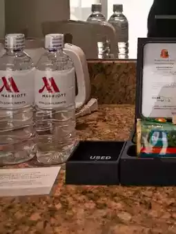 There's a table by the window, so you can relax in your room at night and enjoy a drink while watching the night view.