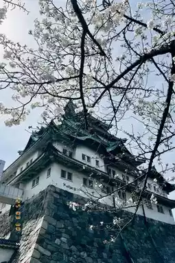 This is my second visit to Nagoya Castle, and this time coincides with the cherry blossom season. The flowers are about halfway in bloom, with delicate pink blossoms swaying gently in the sunlight, adding a soft and serene atmosphere to the entire castle.