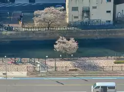 The large public bath is located on the 1st floor for men and the 14th floor for women. Next to the hotel is a Mega Don Quijote, and nearby are stores like Matsumotokiyoshi and Saizeriya. A Seven-Eleven is conveniently located right across the street. Cherry blossoms were in bloom along the Nayabashi area walking paths.