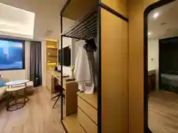 This type of room seems to be popular in Korea these days. They offer a studio-style room with an open bathroom and bedroom, creating a sense of openness. This one has sliding doors that can be opened and closed.