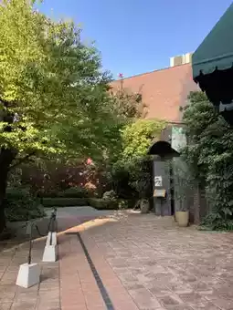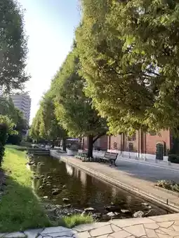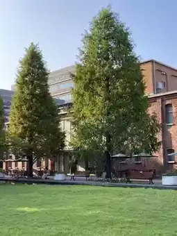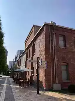The European-style red brick buildings are delightful, surrounded by greenery that offers a calming atmosphere. It's a perfect place to relax and unwind.
