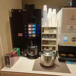 At the back of the front desk (2nd floor), there is an area where breakfast is served, where you can enjoy a welcome drink.