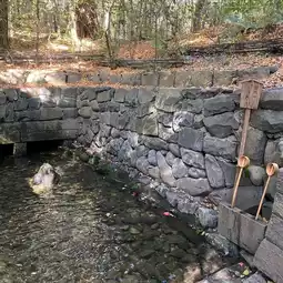 The water goddess "Matsu-goddess" is enshrined in the Kiyomizu-sha Shrine. There is a famous legend that at the end of the Heian period (approximately 1068-1185), the military commander Taira Kagekiyo used the spring water to wash his eyes and cured his eye disease. Make a wish to the spring by pouring water three times on the rock in the middle with a spoon and making a wish. If you wash your face with the spring water, it will have a beautiful skin effect. When I arrived at the spring, there were many people queuing up to splash water. I believe the spring water is very powerful, so of course I joined everyone in splashing water. Those who are interested can also come and make a wish to the goddess.