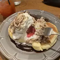 Ordered the autumn seasonal Mont Blanc Pancake🌰 looks super attractive, the pancake is full of air, fluffy and egg flavor🥚👍🏻 And the chestnut puree is smooth enough, the taste is rich, plus the sweetness of maple syrup🍁, the crispness of walnuts and the freshness of cranberry syrup, the whole combination is very good😋