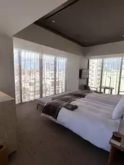 The three sides surrounding the bed are all glass windows, so you can enjoy the city view and night view of Okinawa from your room. The bathroom is not a unit bath, but a separate bathroom, toilet, and washroom, so it feels like you're at home. It was very nice. The pool at this hotel was also very nice. It was surrounded by nature, and the daytime and nighttime views were wonderful, so just looking at them was soothing. There are restaurants around the hotel, and Kokusai Street is close by, so you won't have any trouble finding food. If I stay in Naha City again, I will use this hotel. 📍Hotel Strata Naha 1-19-8 Makishi, Naha City, Okinawa Prefecture Right next to Yui Rail Miebashi Station Check-in 15:00 Check-out 11:00 #Okinawa #OkinawaTrip #OkinawaHotel #Hotel #ResortHotel #Naha #NahaHotel #Trip2023