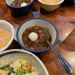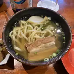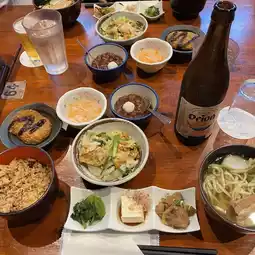 We had the Okinawan local dish Juushi (seasoned rice), mini Goya Chanpuru, Okinawa Soba (small), a small bowl of Jimami tofu, Mimiga (ear carp), croquettes, and zenzai. It's right in front of Makishi Station (see photo 4), so Kokusai Street is also nearby.