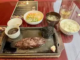 In addition, all steaks come with a self-service salad, soup, rice, and drink.