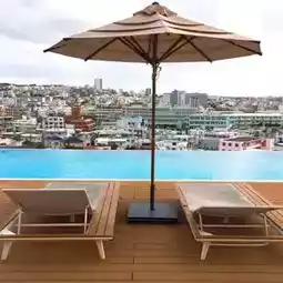 If you stay in a suite, you can use the Novotel Premier Lounge, which has a 360-degree view and feels like it's floating in the sky.